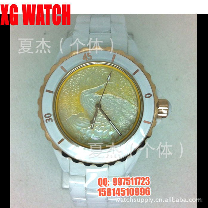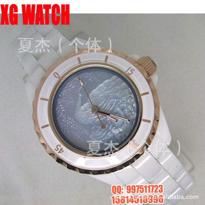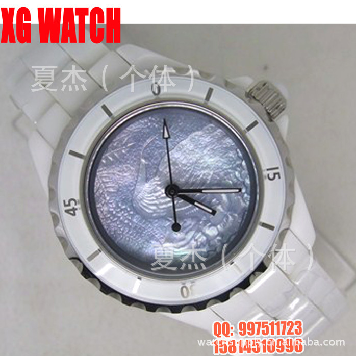 新款手表批发 黑色陶瓷J12手表 立体浮雕刻贝壳面 韩版时尚手表