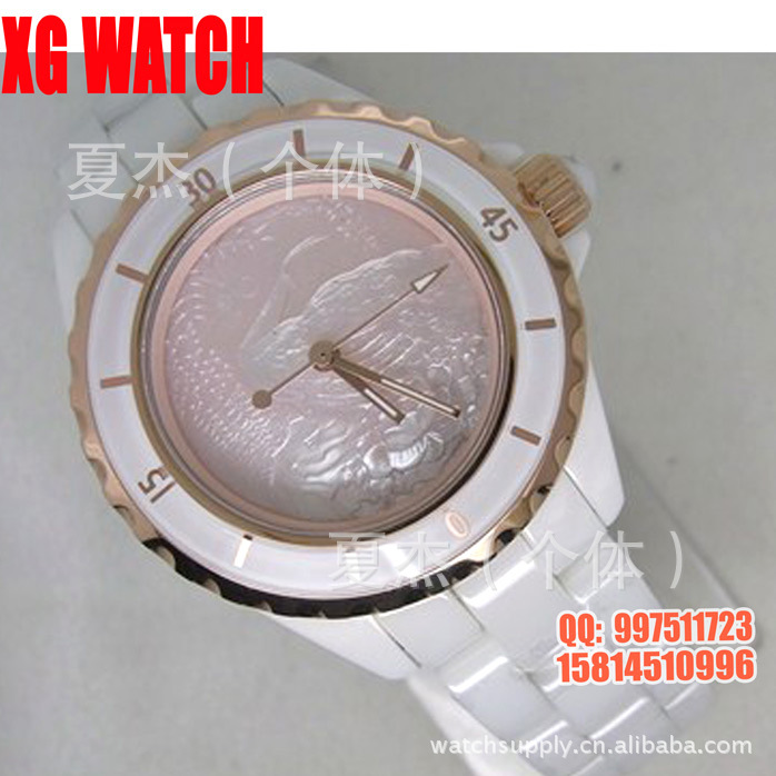 新款手表 白色陶瓷J12手表人像立体浮雕刻贝壳面 韩版时尚手表