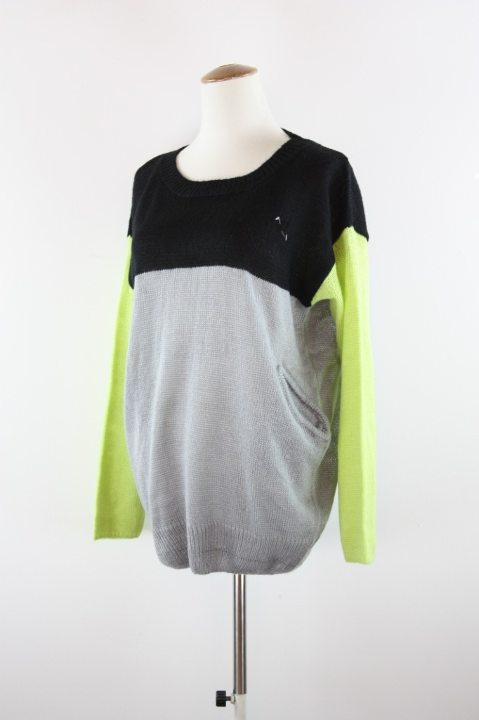日系vivi杂志甜美新款女装lena着荧光色拼接袖可爱毛衣CL8832