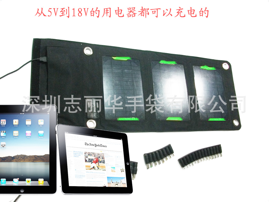 生产笔记本平板电脑手机等10.5W太阳能3块折叠牛津布充电包