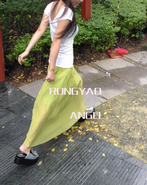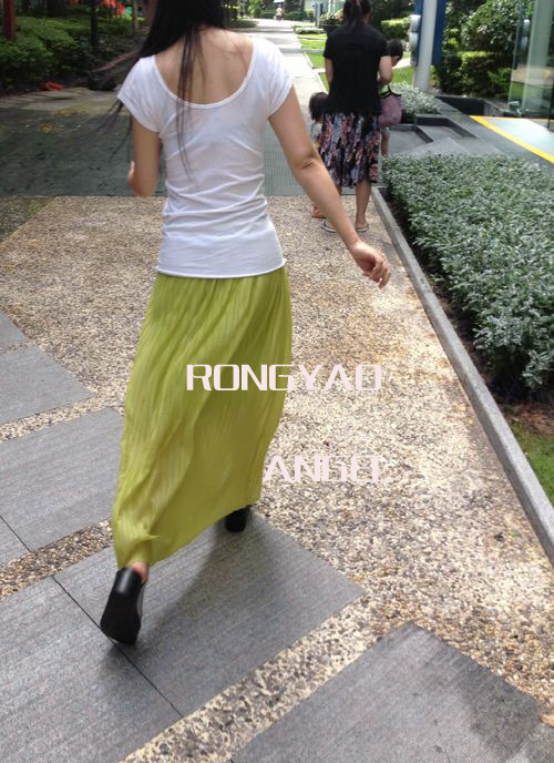 2012女生必败 百搭百褶裙 半身裙 长裙 批发订做 Q01 荧光绿色