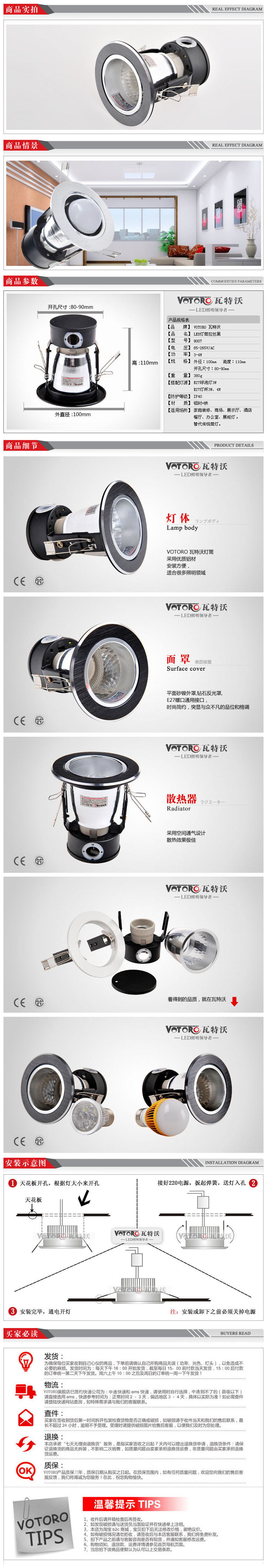 新款筒灯灯罩 E27螺口灯罩 可配LED筒灯光源 拉丝黑款