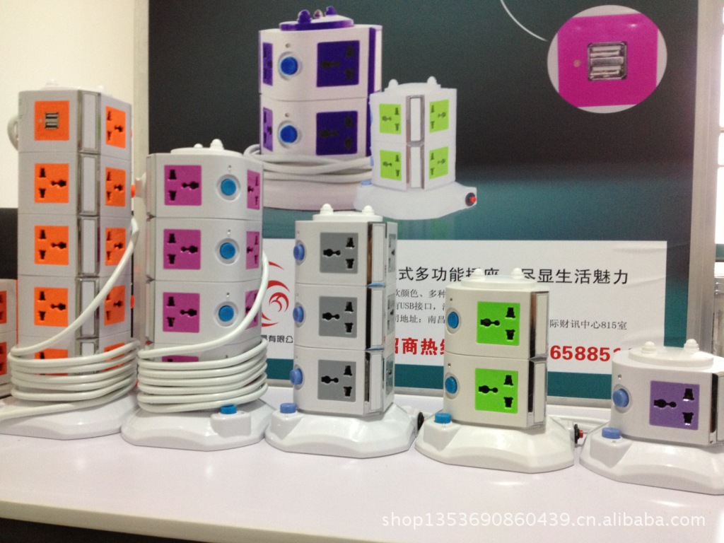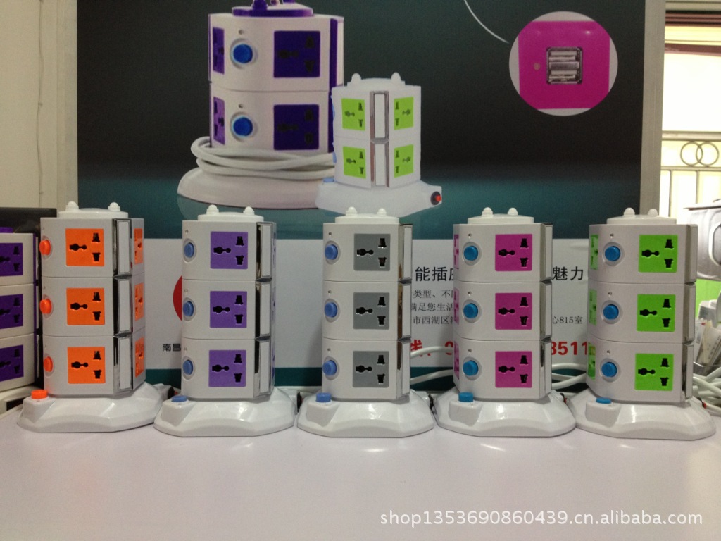 支持iphone,ipad,数码相机充电的接线板立式