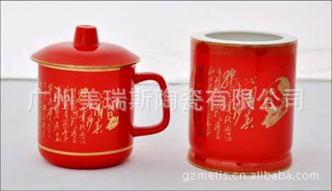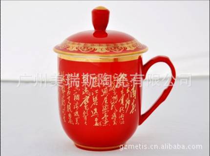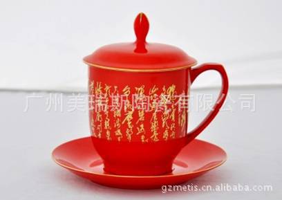 美瑞斯厂家供应经典红瓷会议杯,高档礼品会议杯批发订做,