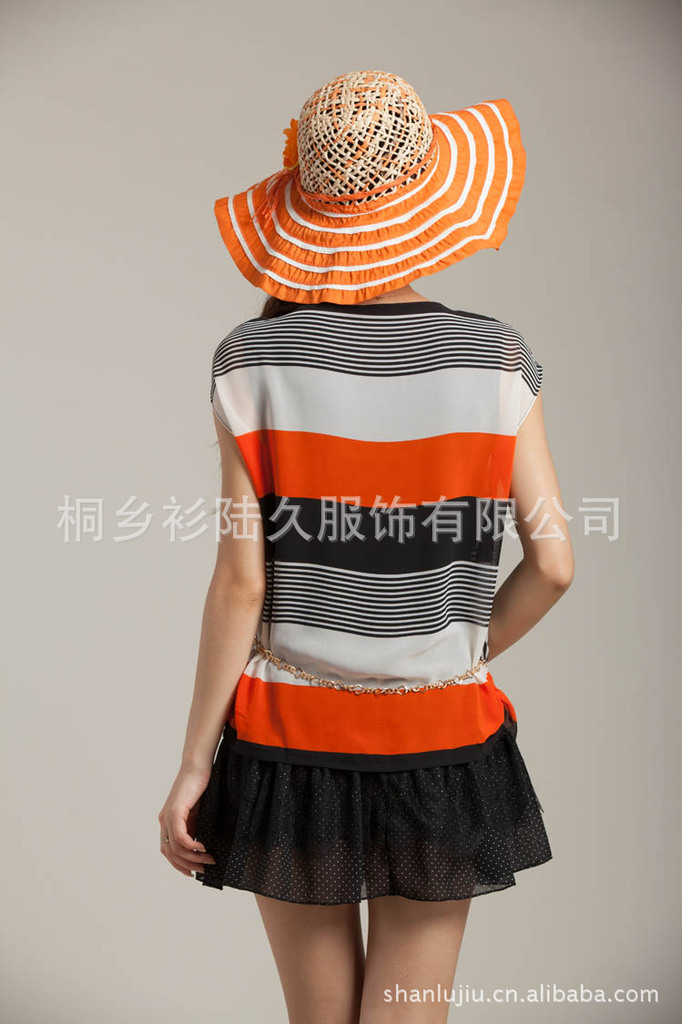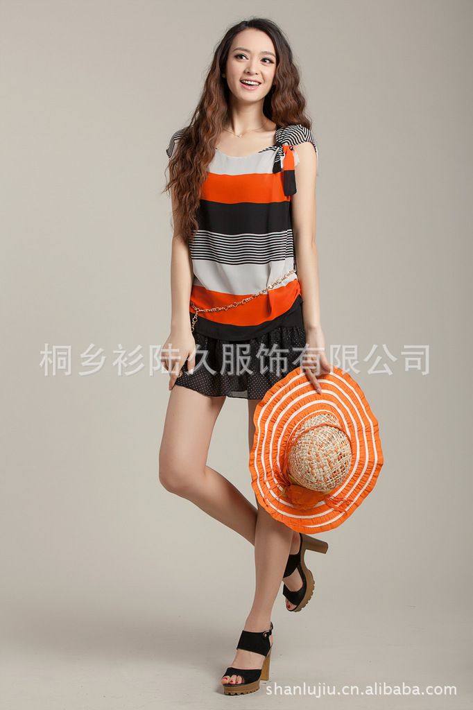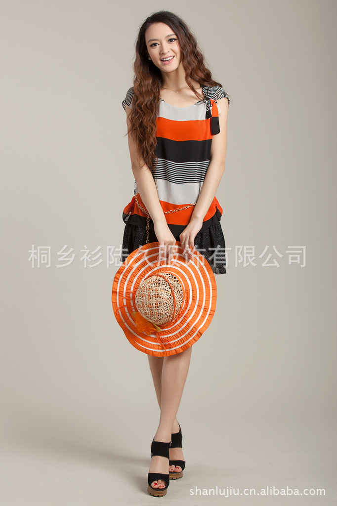 2012夏季新款 宽松舒适 条纹雪纺短袖连衣裙 女 韩版8335