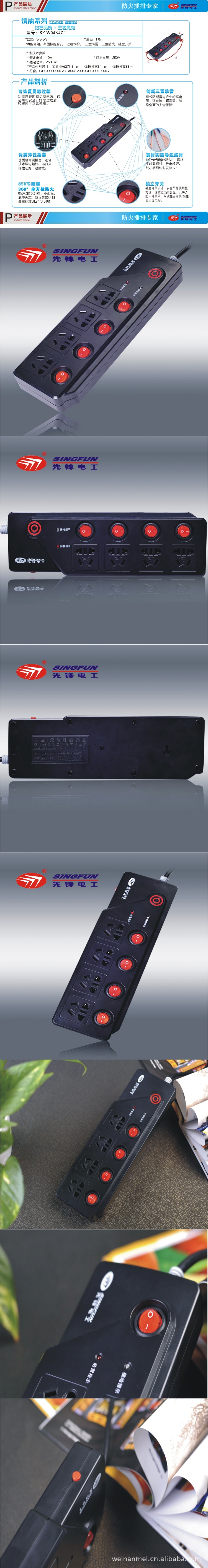 先锋插座领袖系列 SF-W04K4ZT 1.8米1.0mm 独立开关 三重防雷