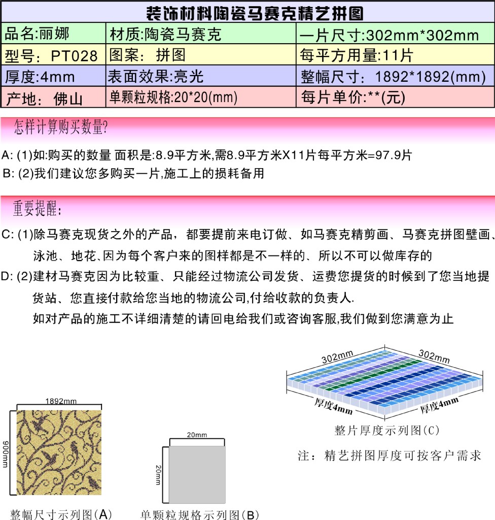 陶瓷马赛克拼图 马赛克墙面砖 佛山马赛克 马赛克