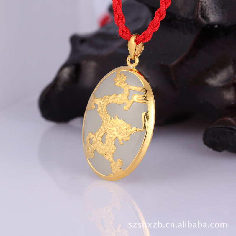 恒星珠宝 金镶玉龙凤吊坠 和田玉 金镶玉 吊坠 批发 凤舞九天