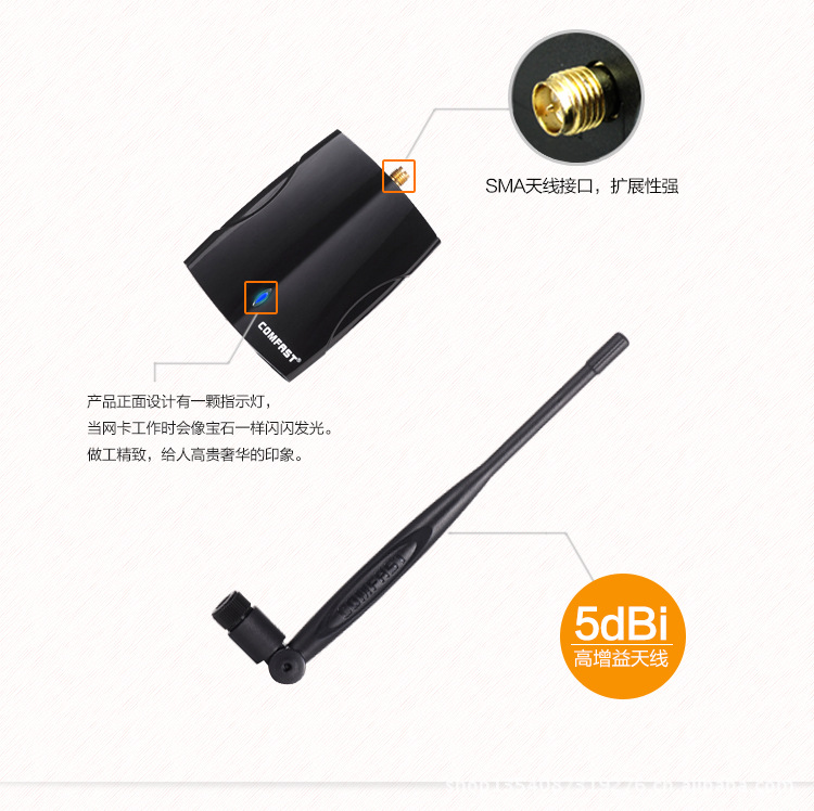 COMFAST WU860N 150M 穿墙型USB无线网卡 放大WIFI信号WLAN接收器