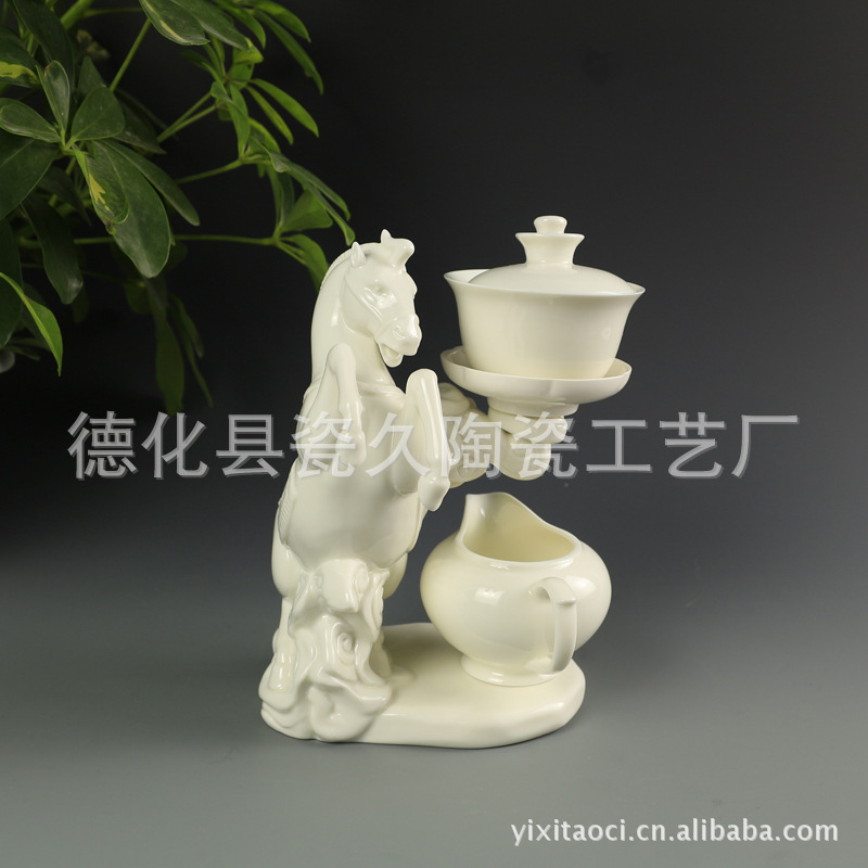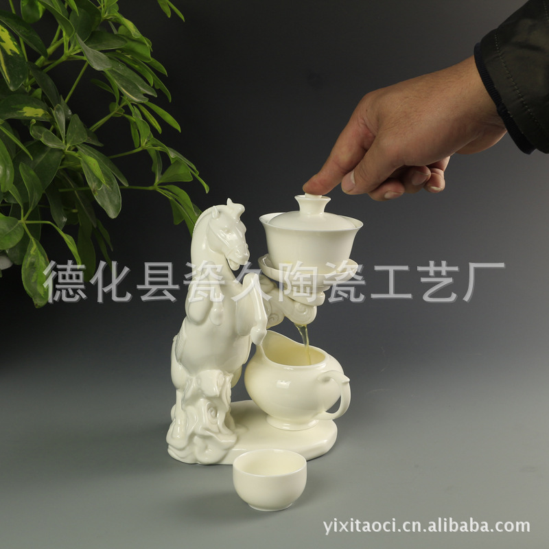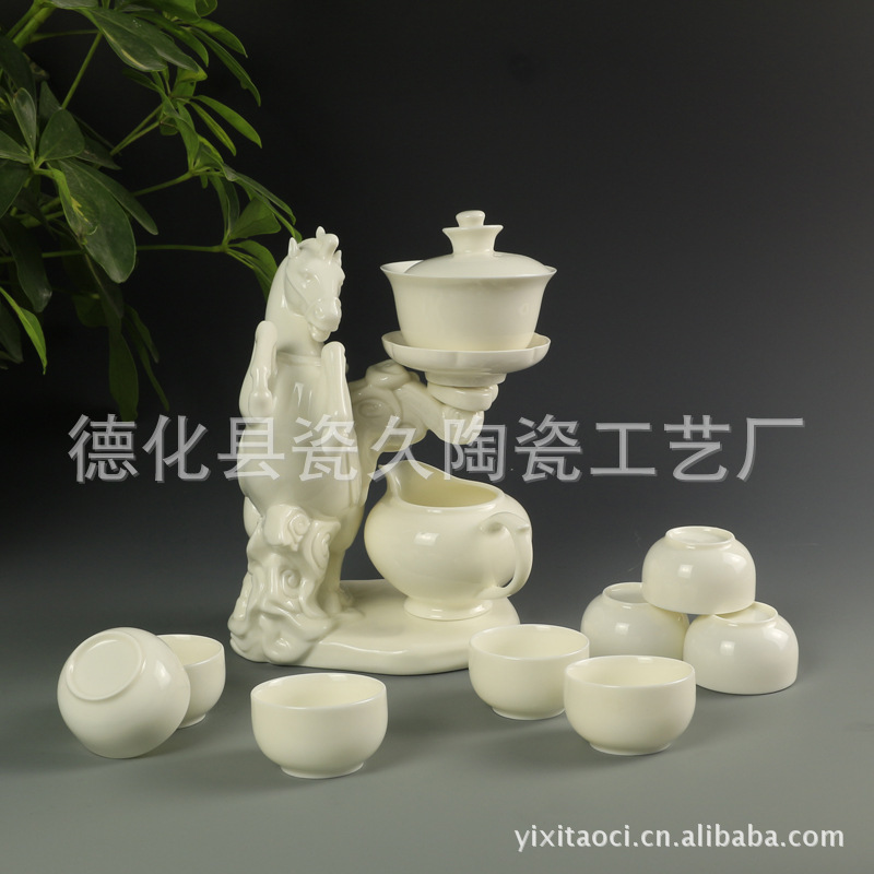 高档白瓷马到成功半自动功夫茶具 锦盒装 商务茶具LOGO订制