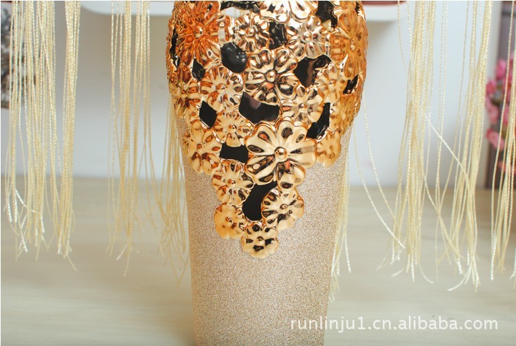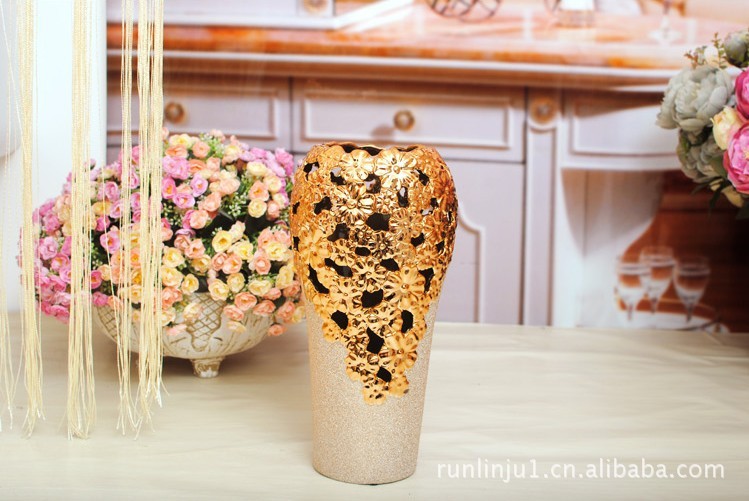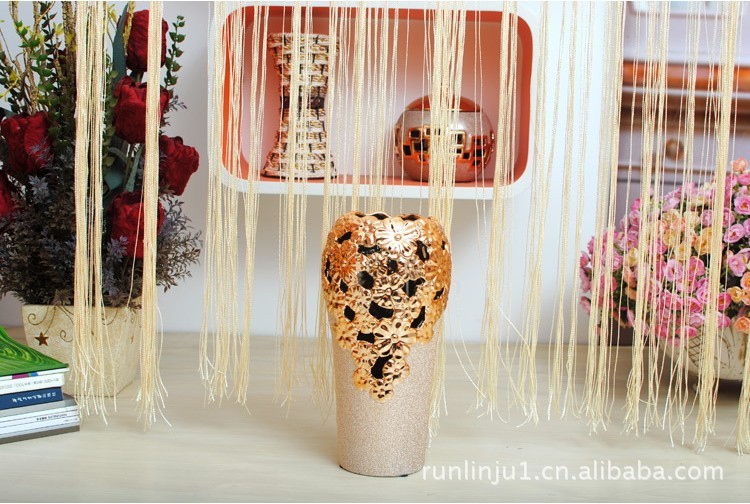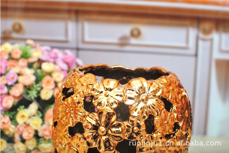 高档花瓶花插 古铜色磨砂陶瓷花器 家居装饰工艺品 陶瓷镂空饰品
