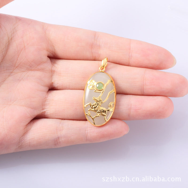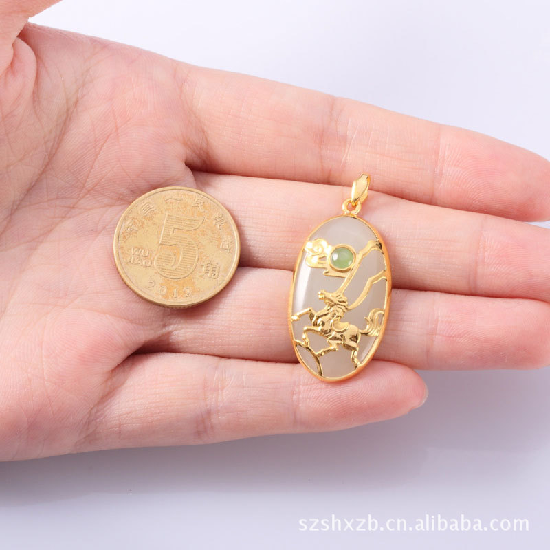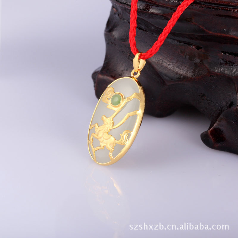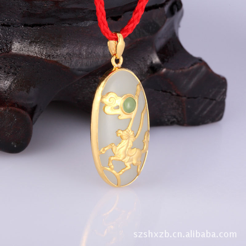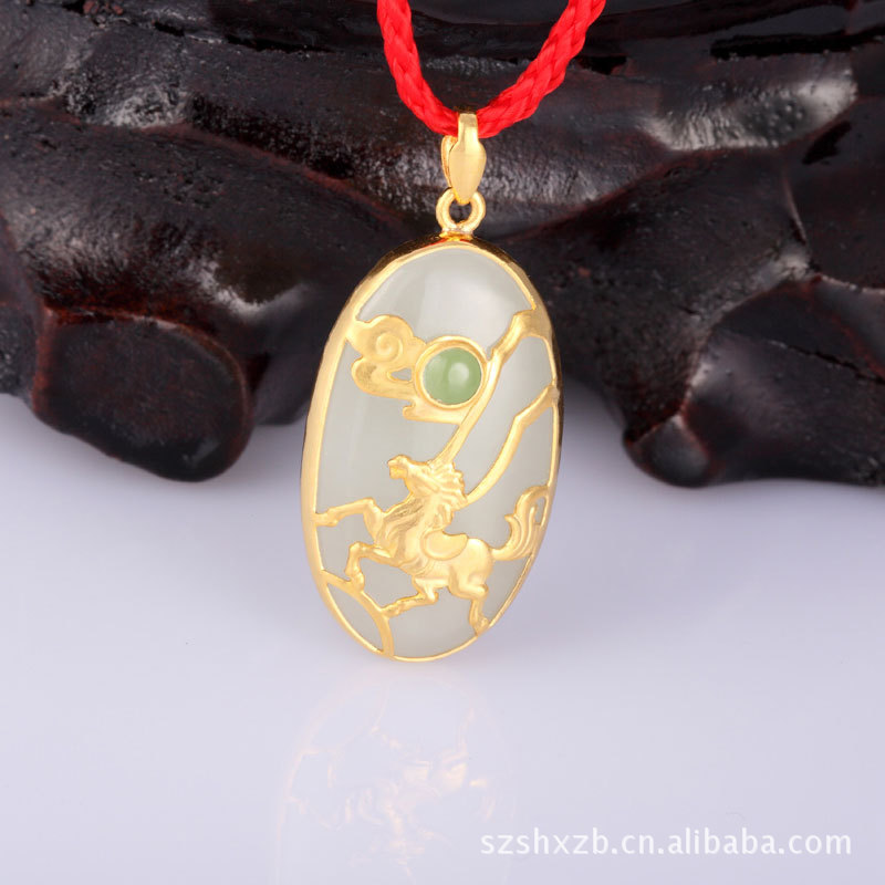 恒星珠宝 金镶玉吊坠 和田玉 千足金 金镶玉 吊坠批发 马到功成