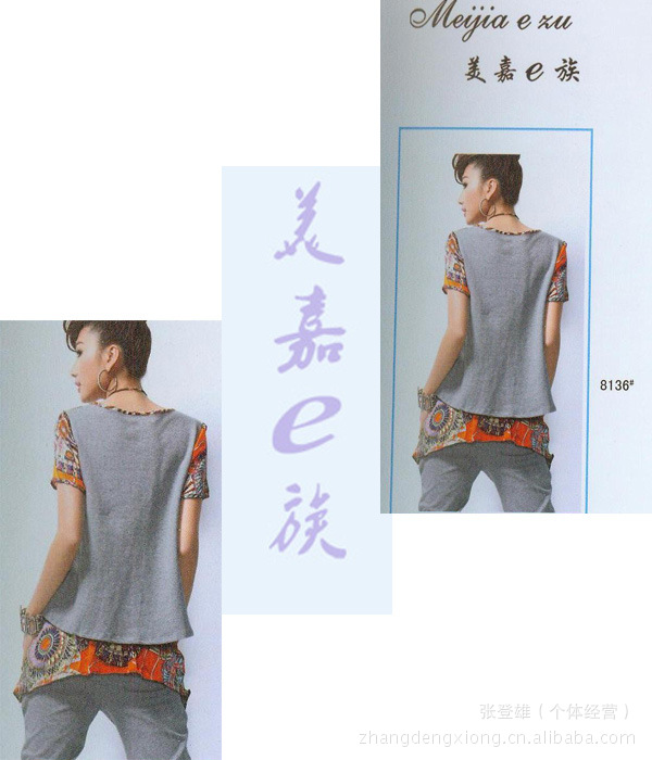 服装批发市场 美嘉e族8136日韩百搭运动加肥加大女式T恤 一件代发