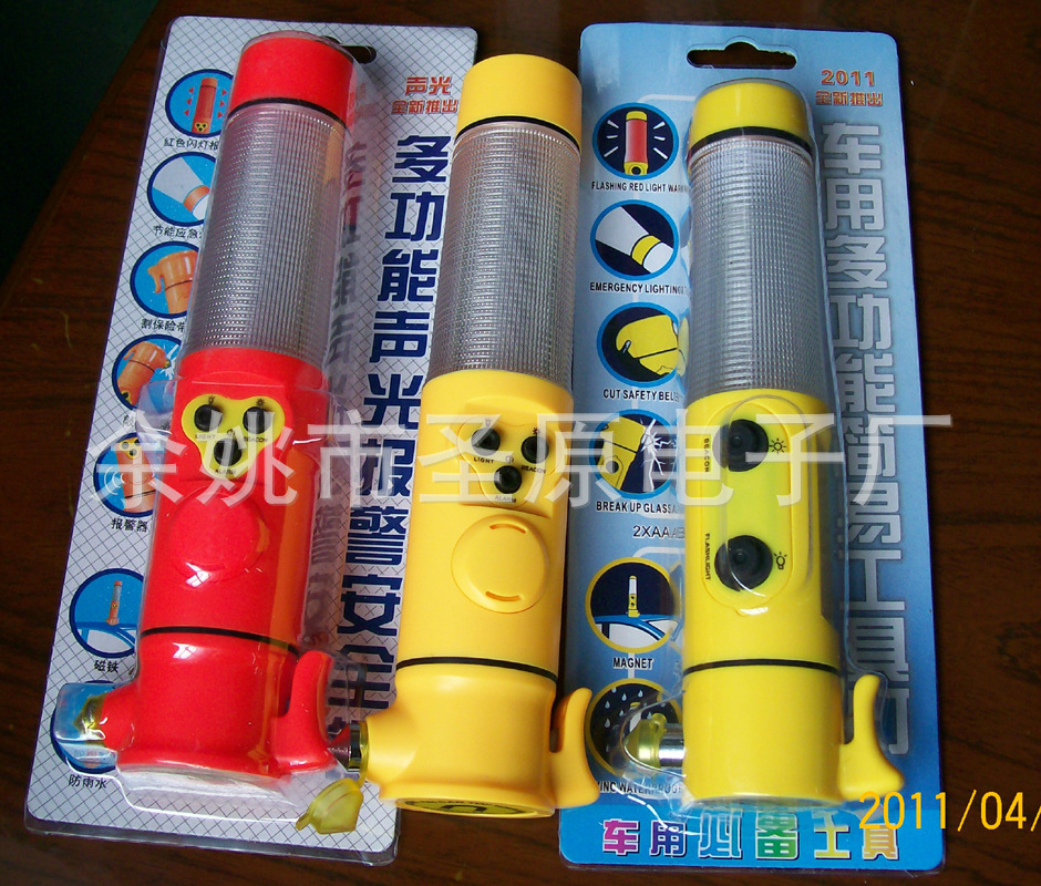 安全应急手电筒 射程元 强光照明 带有安全锤 刀具 警示双闪功能