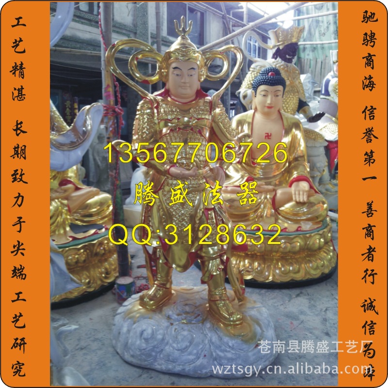 玻璃钢韦驮菩萨,木雕韦驮,铸铜韦驮,贴金韦驮,彩绘韦驮神像