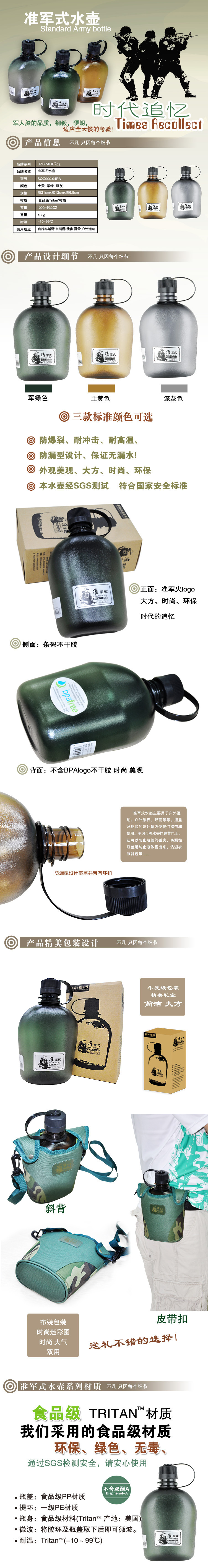 304不锈钢真空保温杯 军迷 军训 户外 野外防摔运动扁水壶