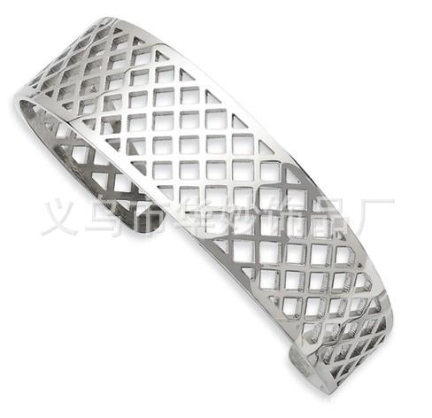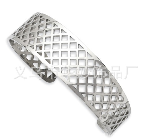 低价批发不锈钢镂空手镯 开口格子手镯 钛钢手饰加工订做