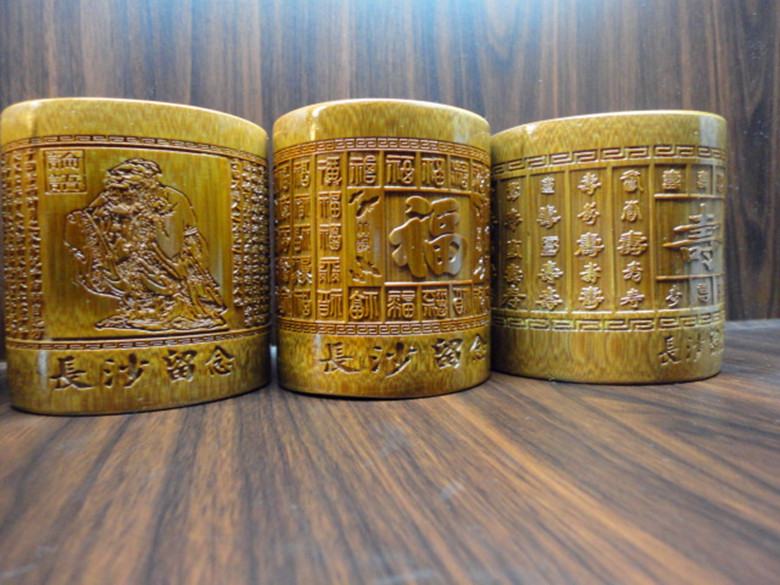 长沙特色手工艺品/竹雕笔筒/旅游纪念品