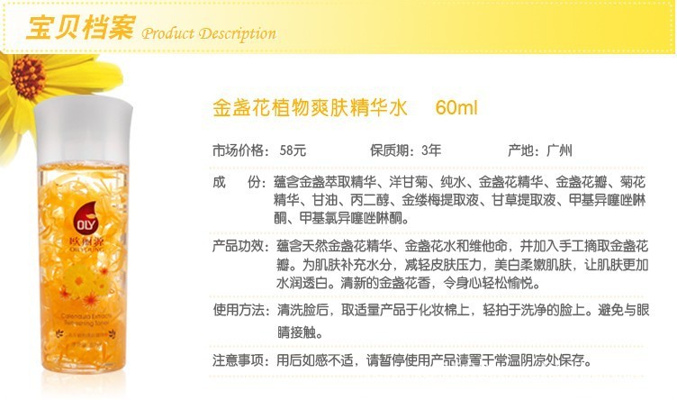 专业厂家供应金盏花植物爽肤精华水OEM生产