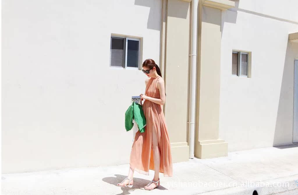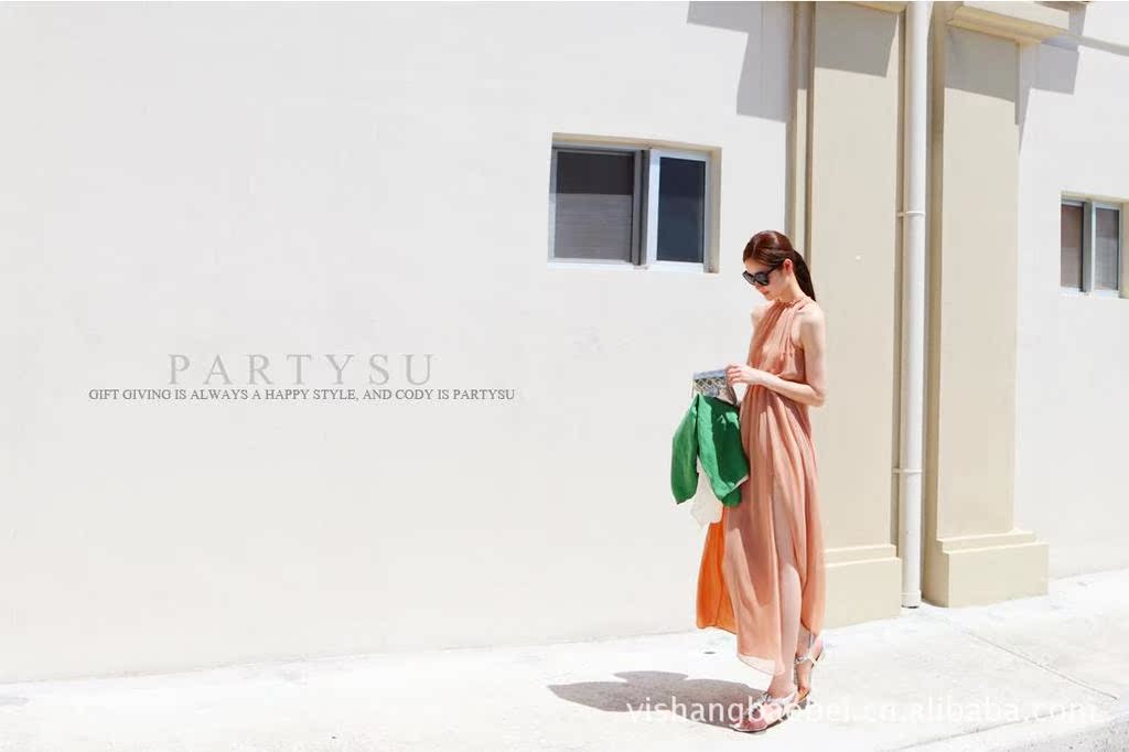 2012夏新款partysu代购同款 露背高开叉雪纺连衣裙拖地长裙改良版