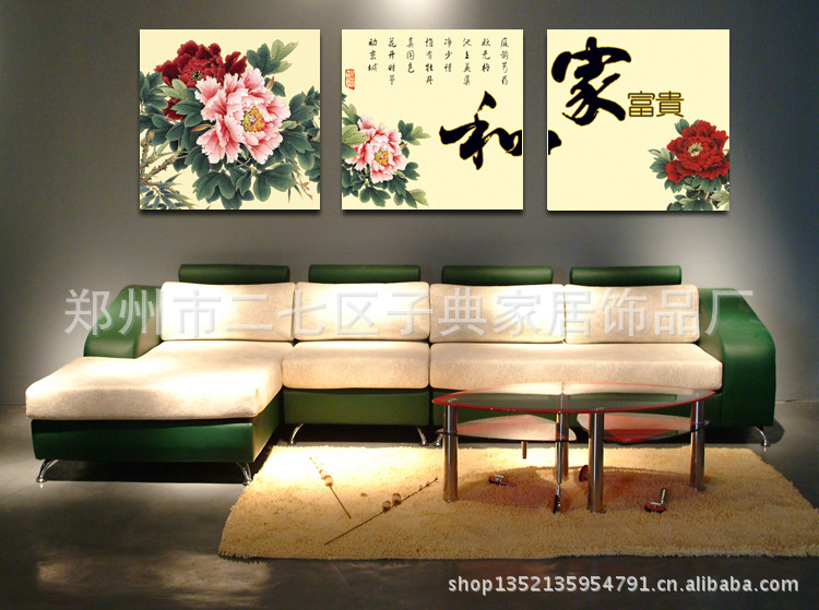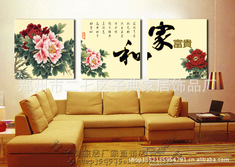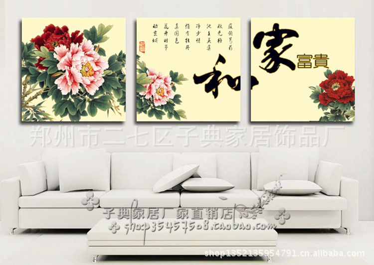 时尚现代家居装饰画 三联无框画 客厅无框画 家和万事兴