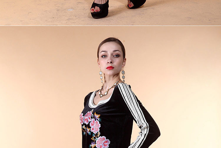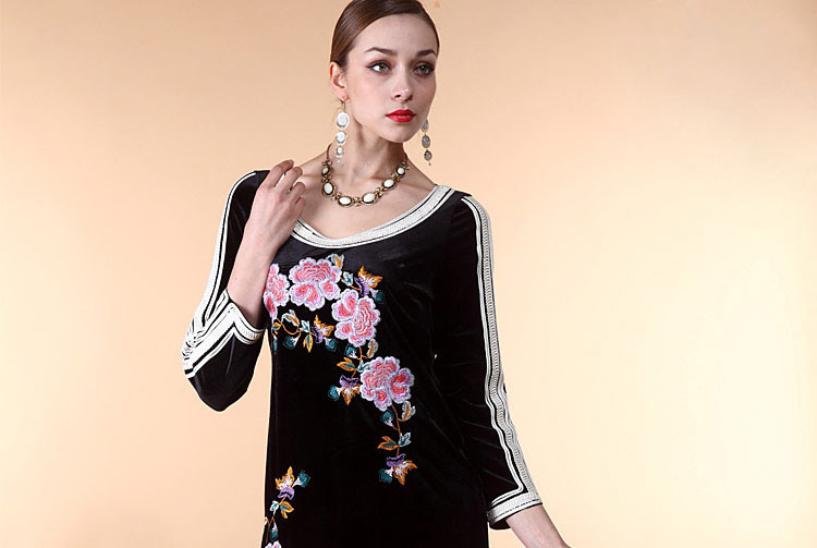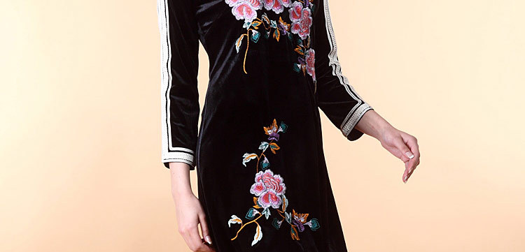 7712#东北妞大码女装欧美外贸原单秋冬中老年金丝绒连衣裙长袖长