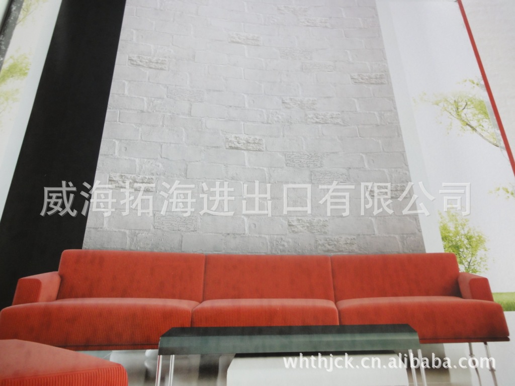 精品直销 灰白底立体感强逼真仿砖文化石乱码字墙纸大卷新韩纸