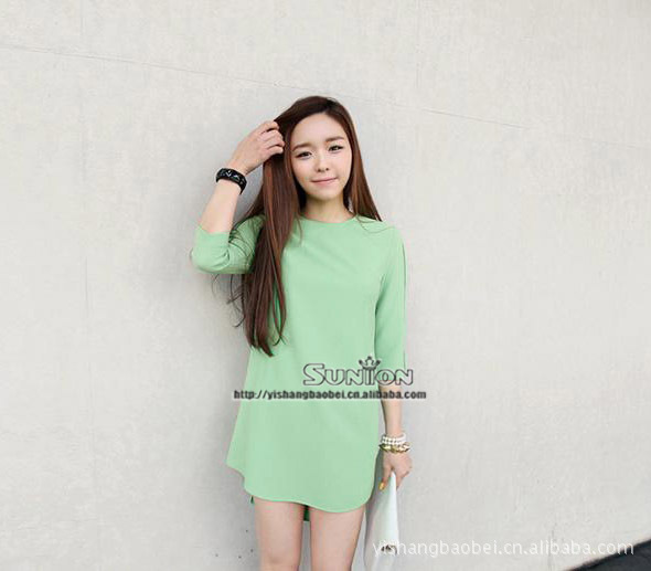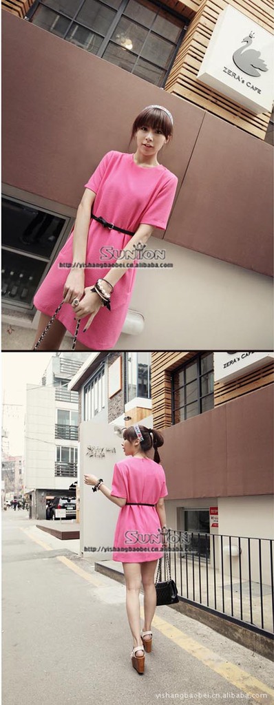 2012春夏新款糖果色果绿玫红色 短袖连衣裙短裙 行家拿货周