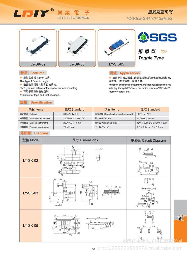 德丰开关:微动,滑动,按钮,旋转,琴键小开关等