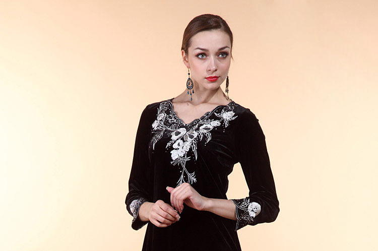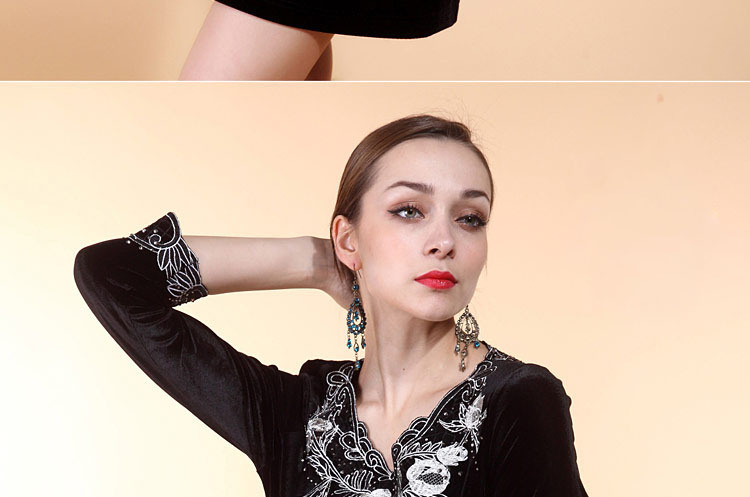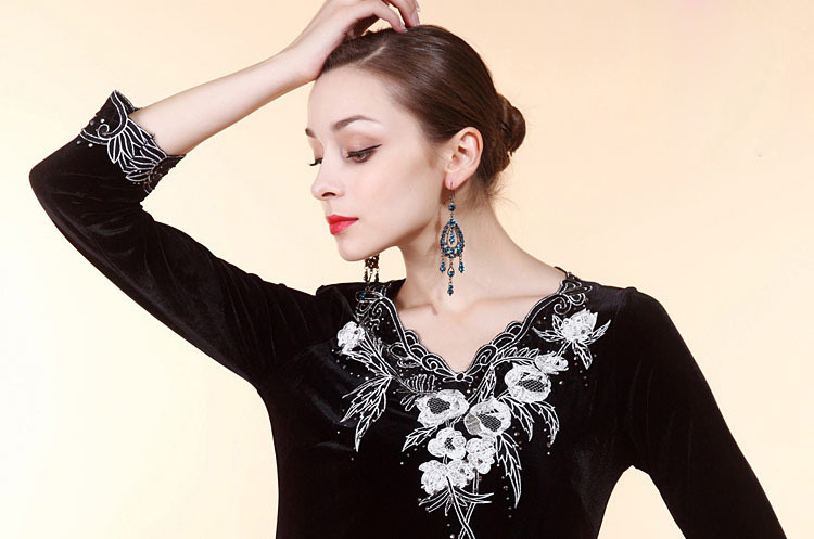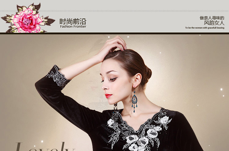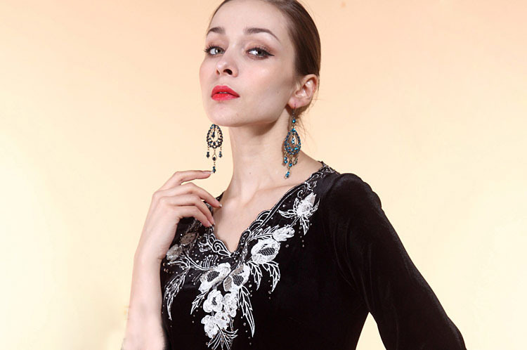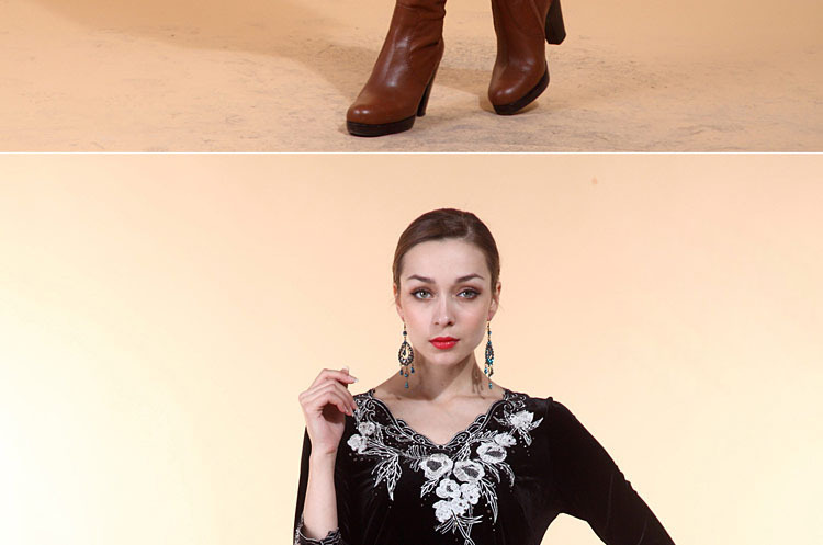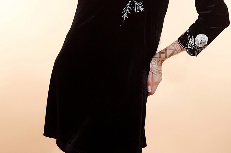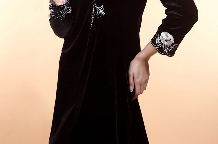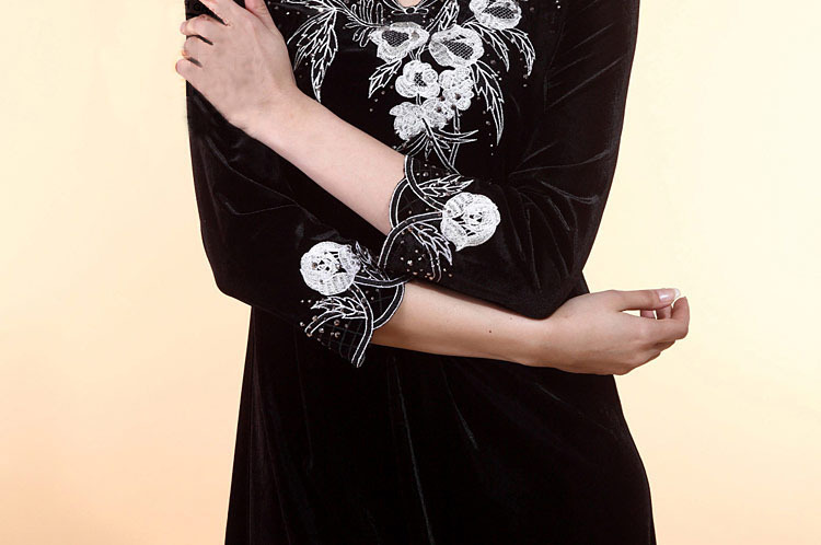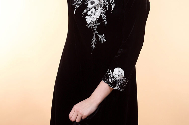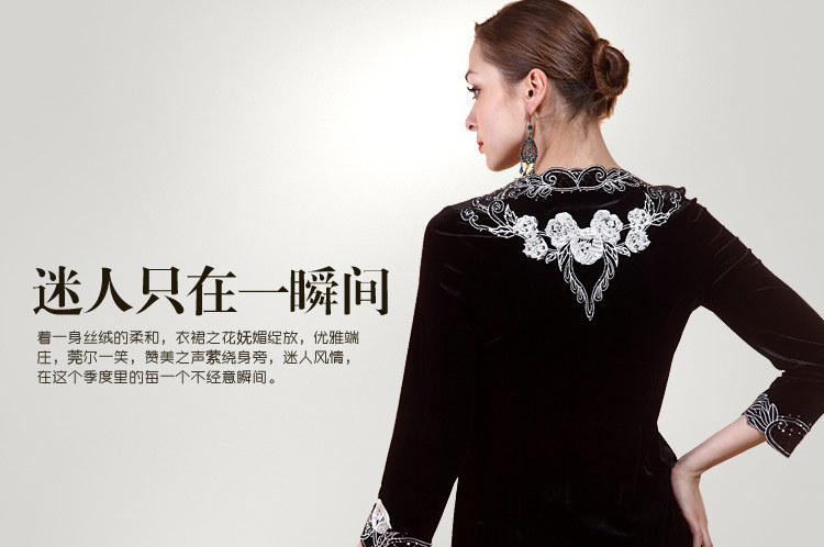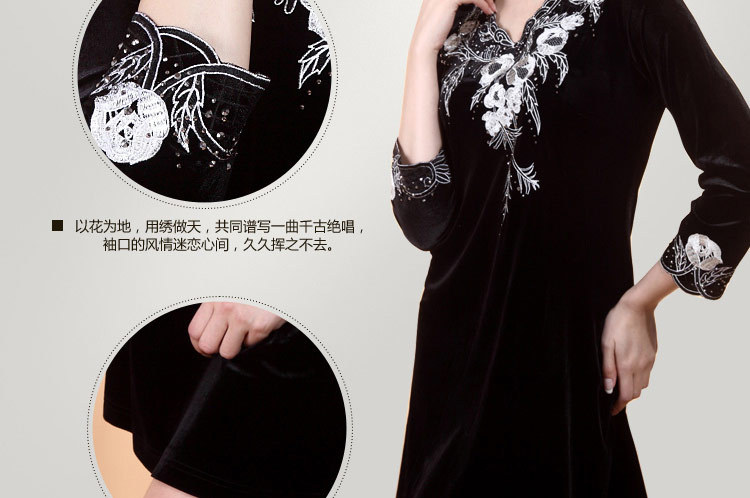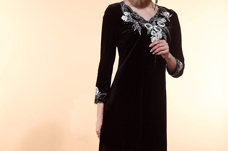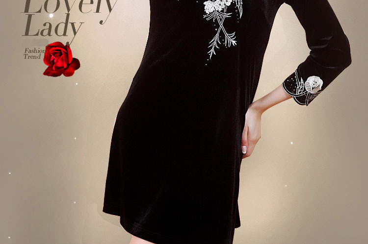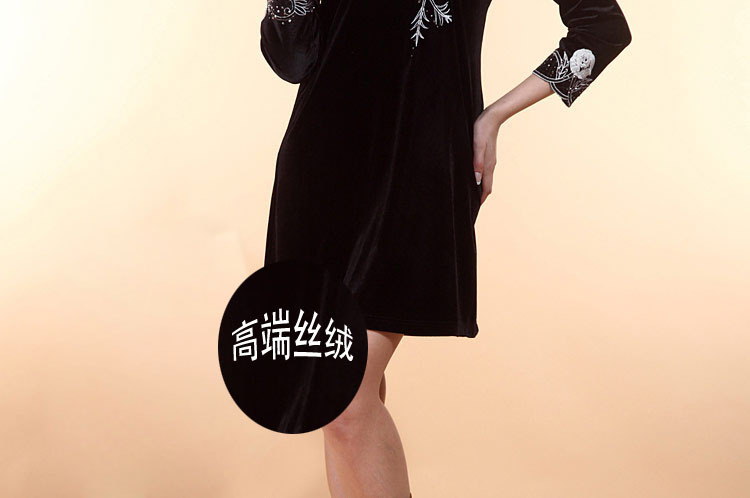 1202#外贸大号女装中老年金丝绒长袖连衣裙秋冬新款婚礼妈妈装秋