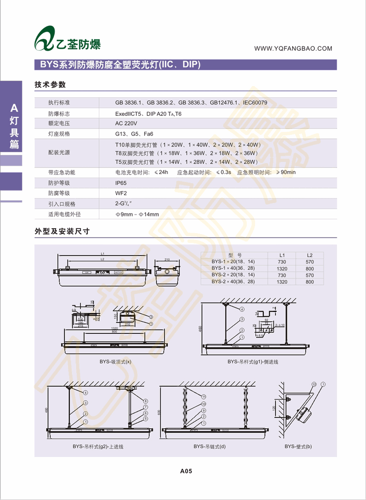 防爆防腐洁净荧光灯BHY-2X40W LED荧光灯,防爆照明灯厂家供应