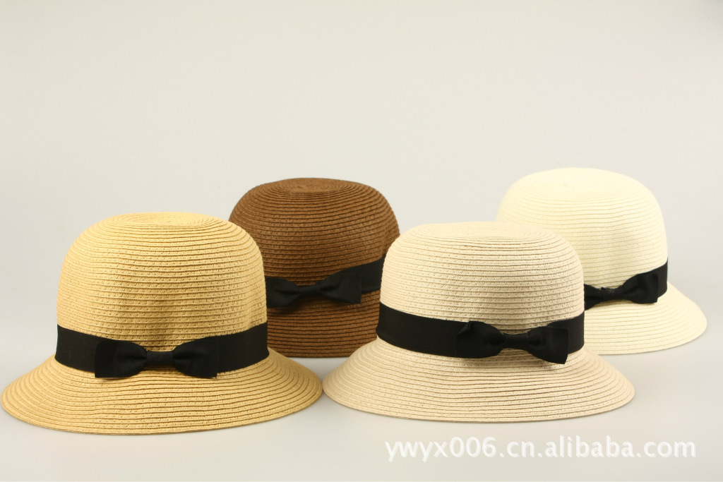 批发零售夏帽 女士渔夫帽 纸帽时尚帽 带花草帽 遮阳帽