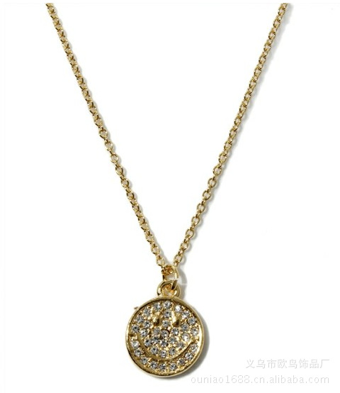 日本爆卖款 笑脸满钻合金吊牌 时尚饰品项链
