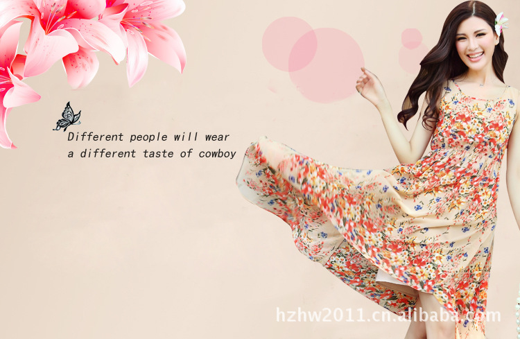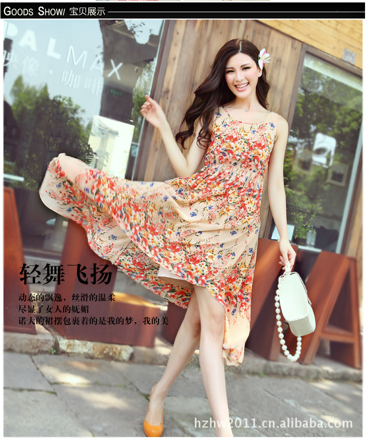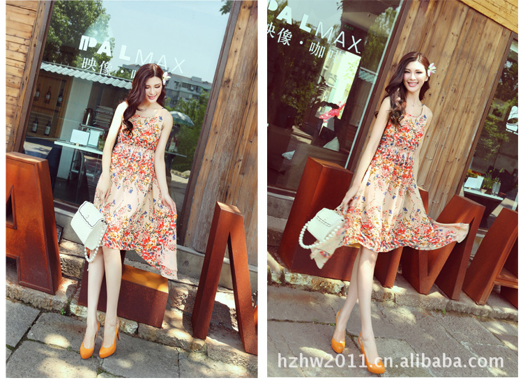 华薇服饰 品牌服装 招商代理 碎花背心裙 无袖雪纺 连衣裙