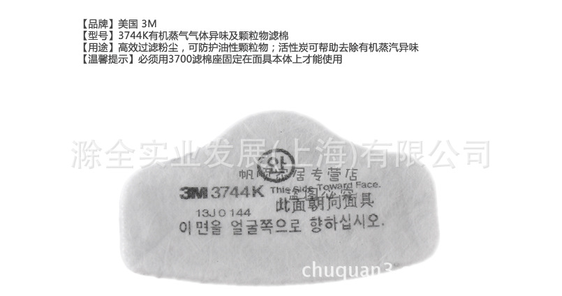 正品3M 3744K颗粒物/有机蒸气异味滤棉
