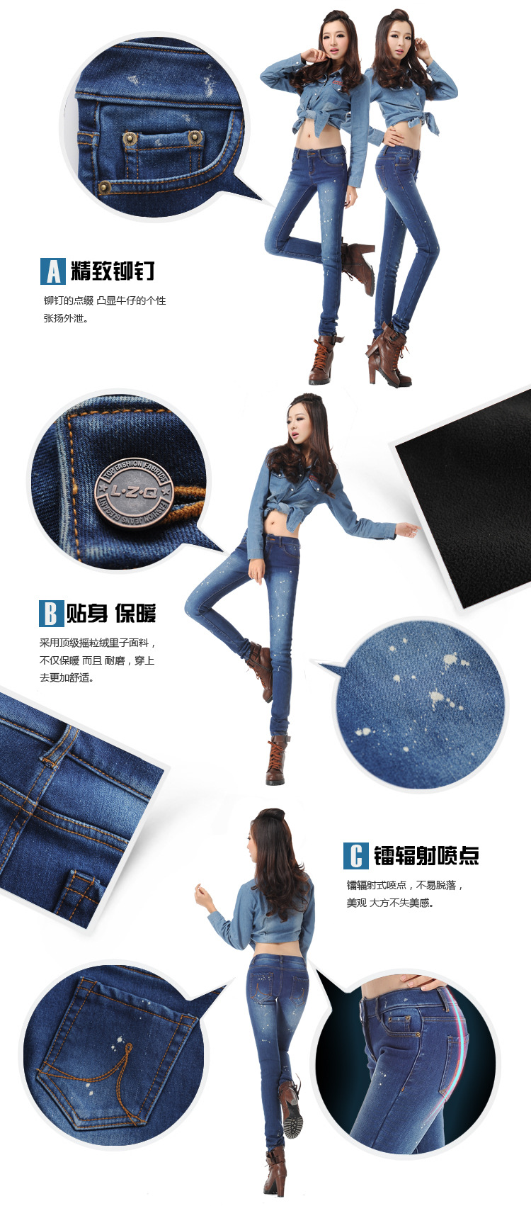 2012秋款新品 加绒加厚牛仔裤 显瘦小脚裤 时尚修身水洗厂家直销