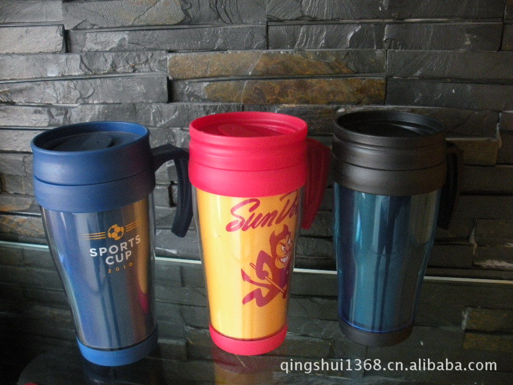 厂家直销 实用礼品杯 350ml带手柄广告纸杯 双层塑料杯 水杯