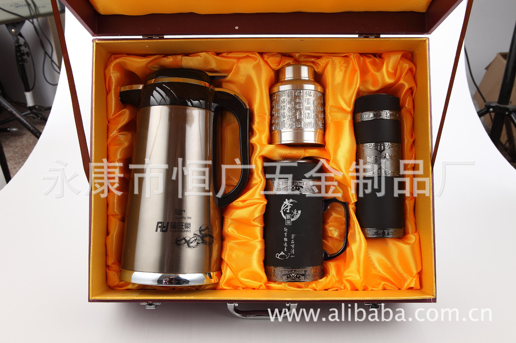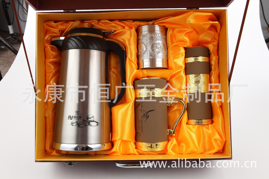 高档精品不锈钢保温壶套装1.0L四件套,全锡杯。可以定制LOGO