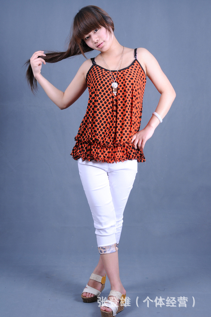 2012新款诗维朵119-6雪纺加大码黑色原点浪漫飘逸短款吊带 原单