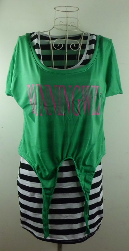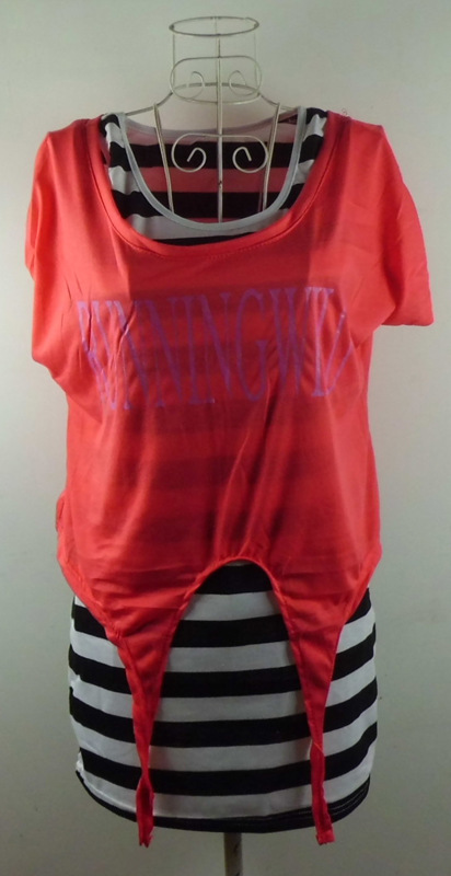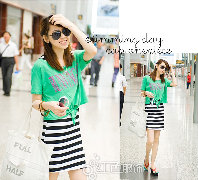 韩版2012新款女装时尚印花衫条纹淑女连衣裙两件套批发