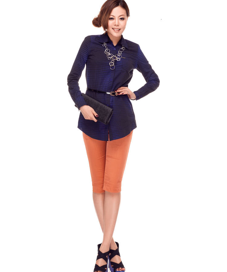2012秋冬新品衬衣 休闲简单大方格子女士打底外穿衬衣