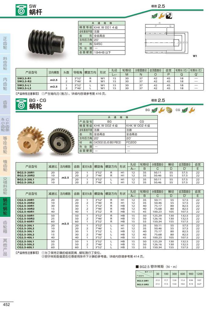日本 KHK 进口蜗轮 SW系列 BG CG 模数为1~6