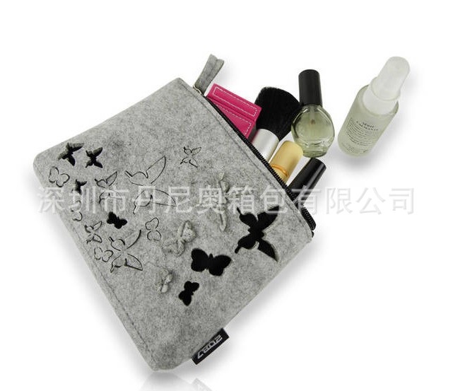 毛毡化妆包 收纳小包 时尚零钱包 毛毡杂物包 化妆袋