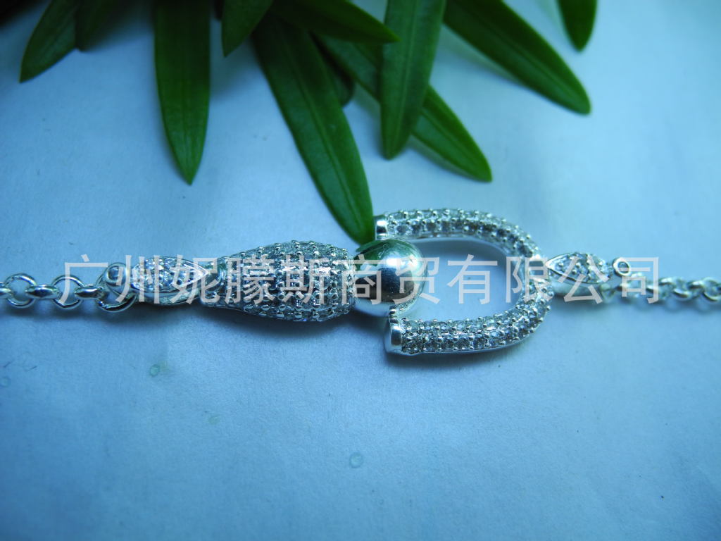 批发定做时尚靓丽镶石925银镀金手链