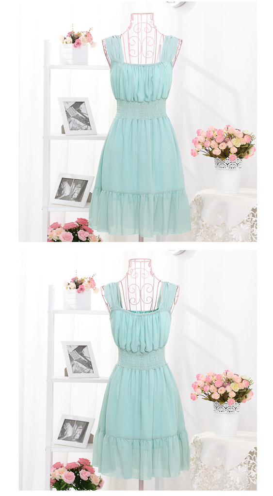 2012日韩女装 夏装新款 气质背带裹胸时尚皱褶收腰雪纺连衣裙8161