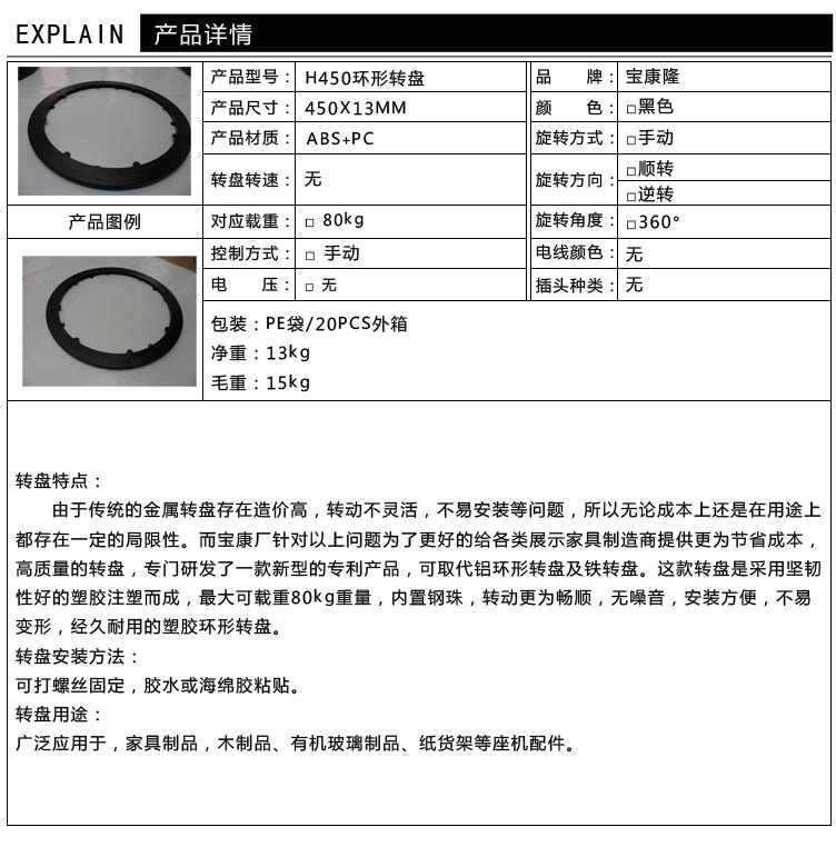 批发用途广泛餐桌塑料黑色展示转盘 走珠旋转底座 电动旋转转盘