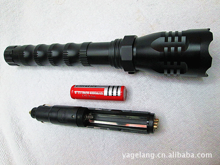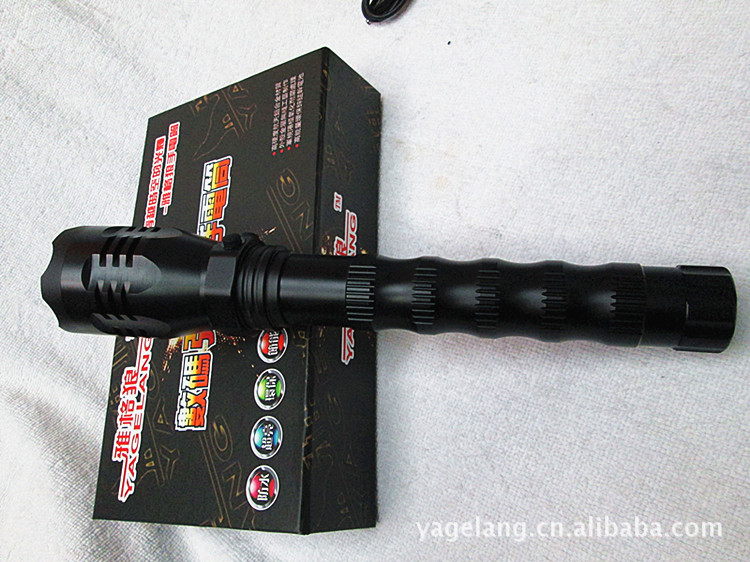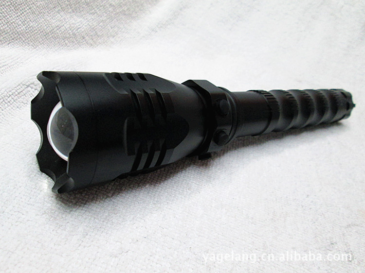 雅格狼 新款强光手电筒 CREE T6灯泡自动调焦手电 户外专用手电