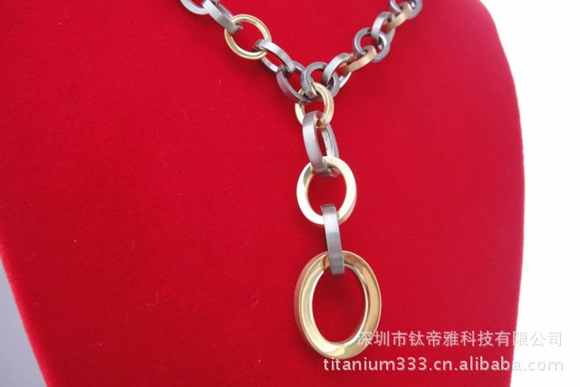 钛厂家供应纯钛立体椭圆圈多色钛金项链钛钢项链钛帝雅生产厂家