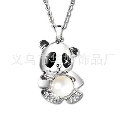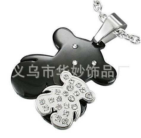 黑白小熊吊坠 不锈钢卡通熊项链批发 厂家直销加工 混批