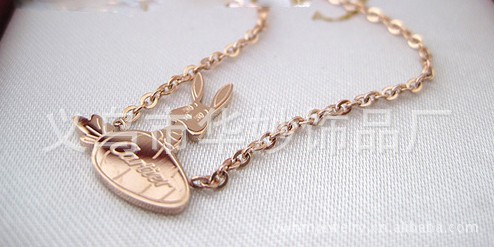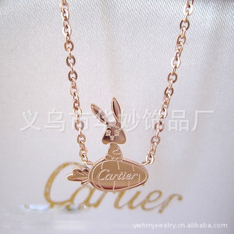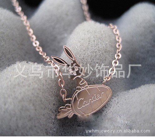 卡通兔子萝卜玫瑰金项链 316L钛钢炉内镀三层厚真金K金高级别品质